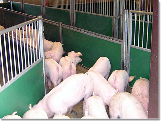 Auf der Umladestelle werden die Ferkel vom dänischen Wagen über eine Schleuse in den Exportwagen geleitet. Der dänische Wagen und sein Fahrer kommen somit nie mit dem Exportwagen und dessen Fahrer in Berührung.
