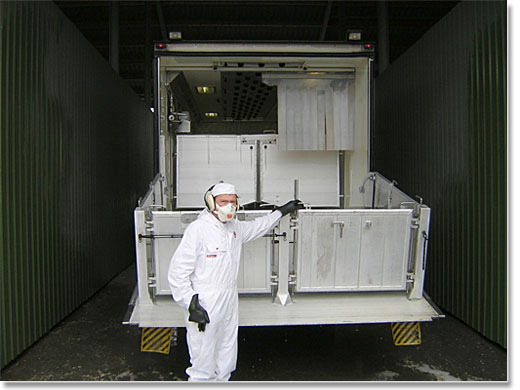 Nach dem die Umladung stattgefunden hat, wird die Umladestelle gewaschen, sowie auch der dänische Wagen gewaschen und desinfiziert werden muss, bevor er den Platz verlässt.