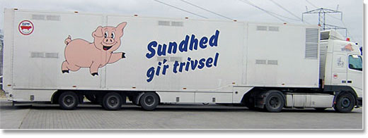 Von den dänischen Landwirten findet der Transport von Ferkeln in den großen spezialgebauten LKWs der SPF statt. Diese Wagen gewähren den optimalen Tier- und Ansteckungsschutz.